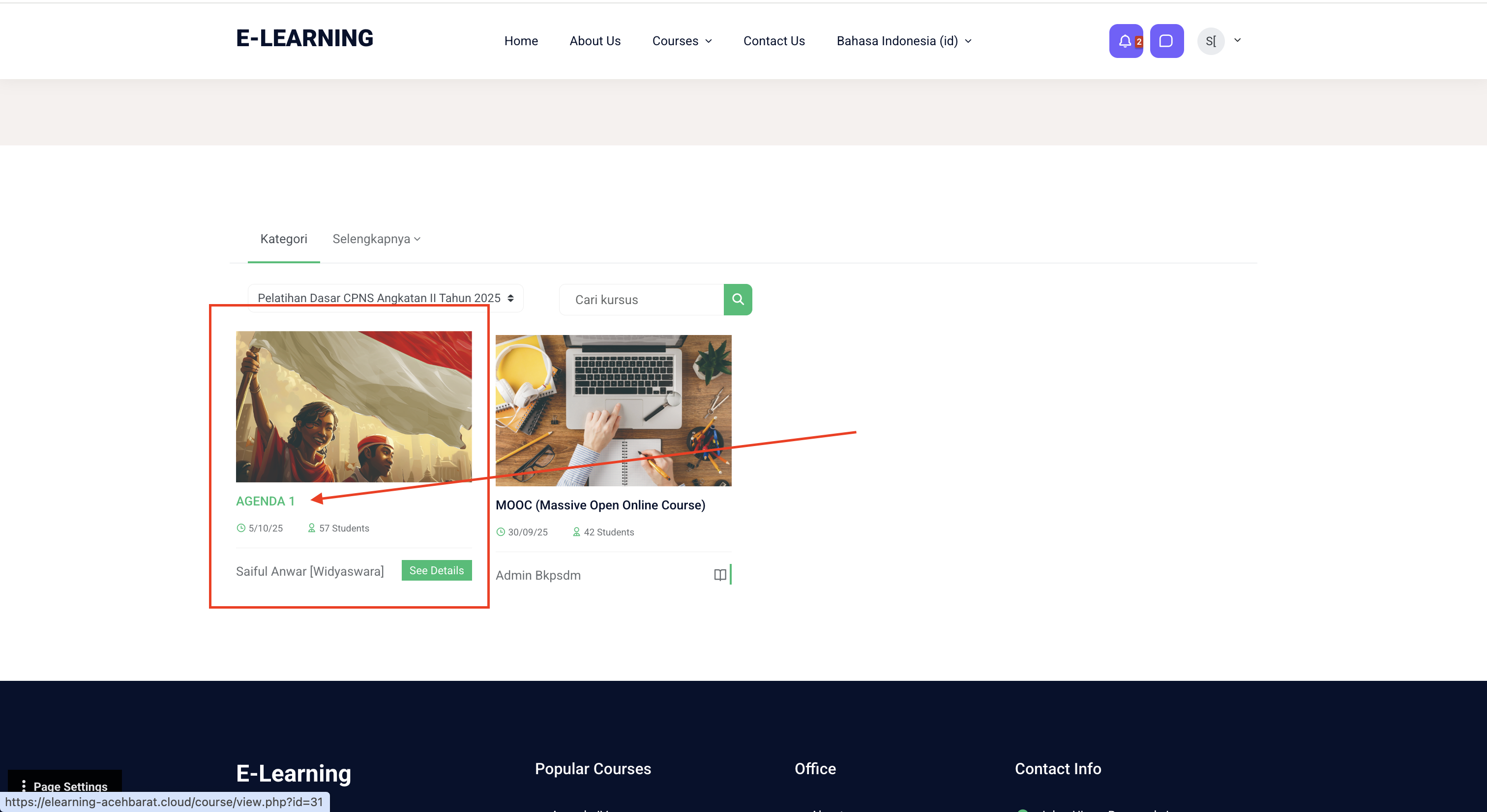 • Arahkan kursor ke menu “Courses” di bagian atas halaman.