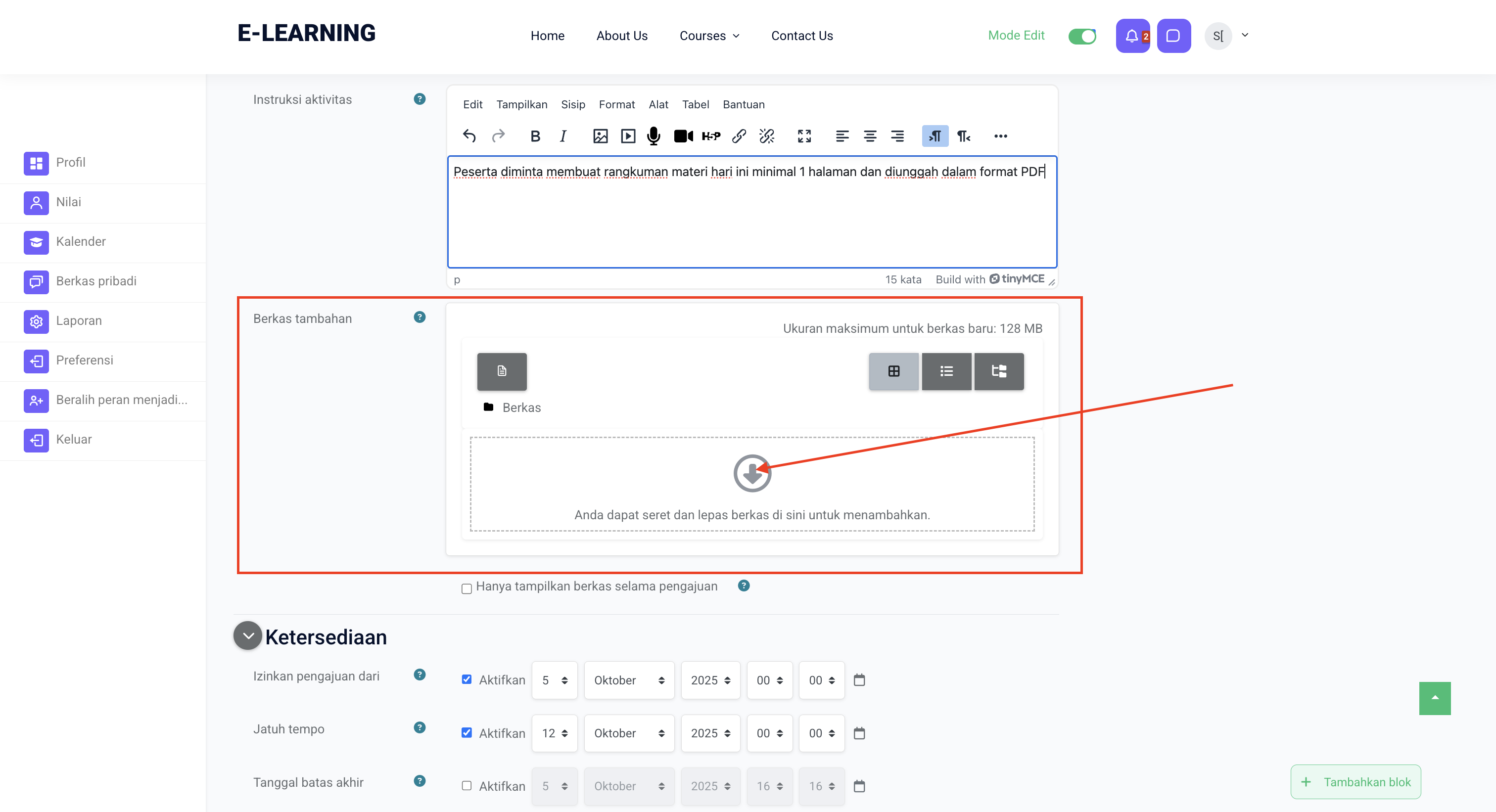 Ini digunakan agar peserta bisa mengunggah file tugas ke LMS.