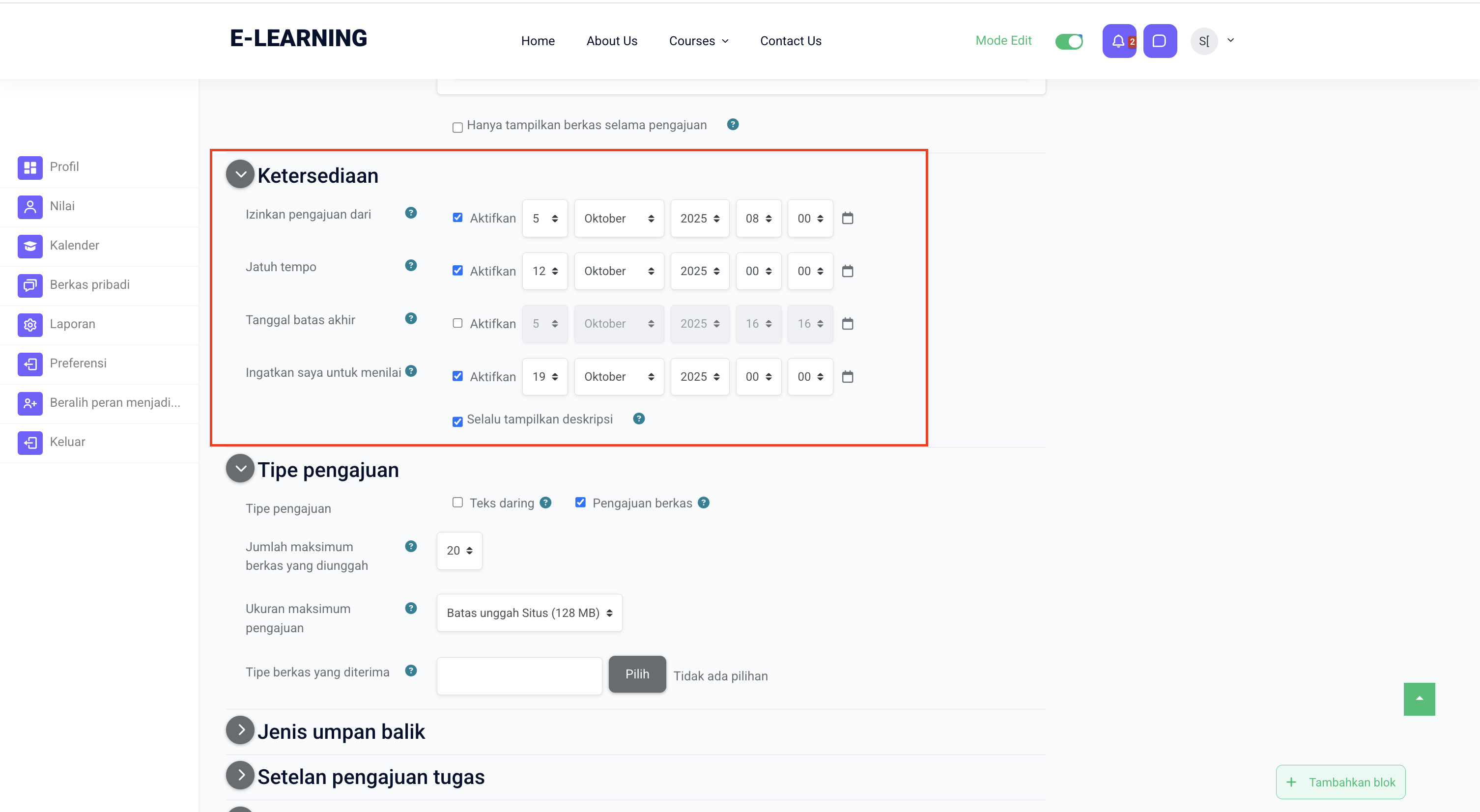 3. Mengatur tanggal pengumpulan dan batas akses tugas.