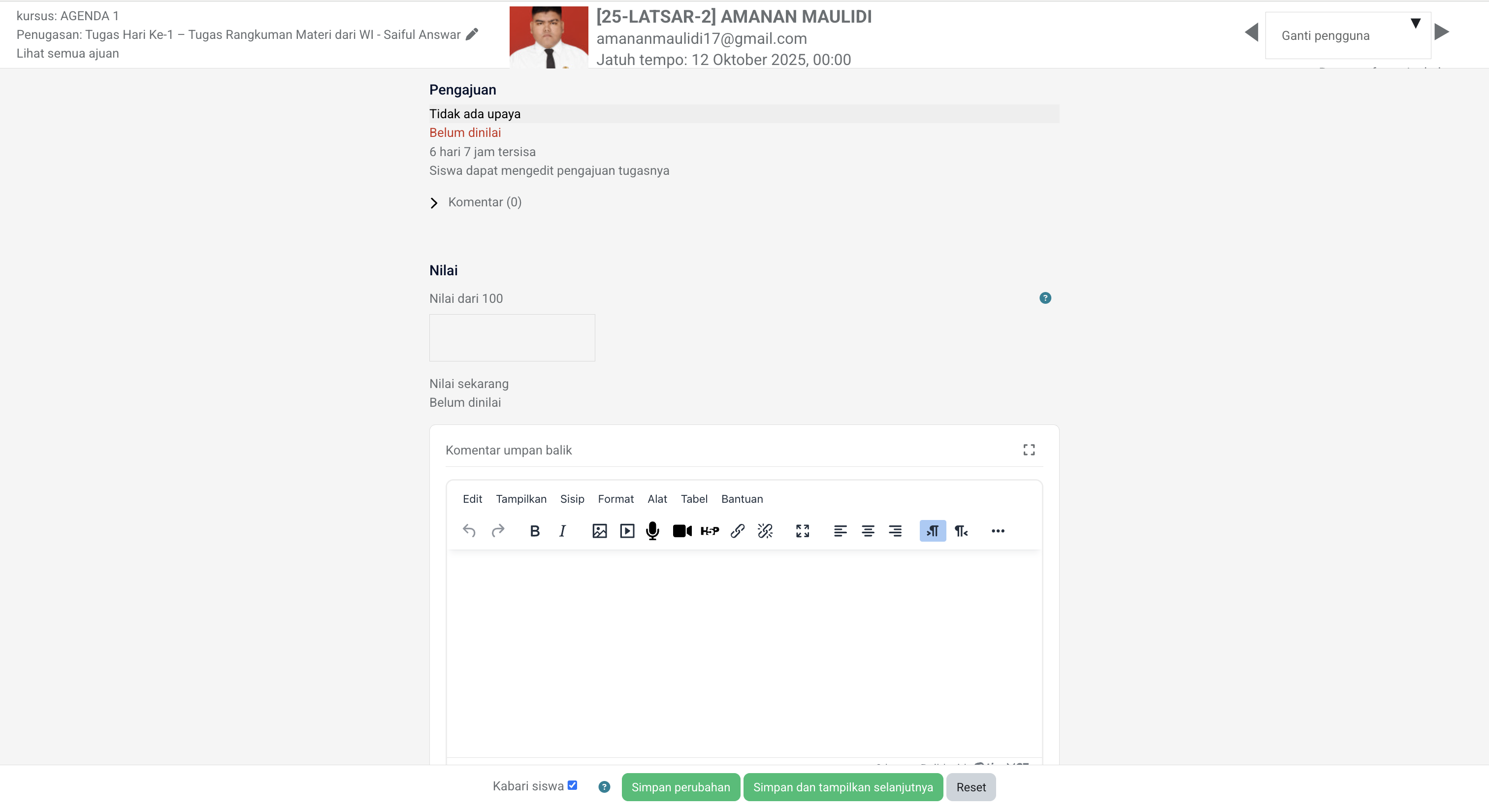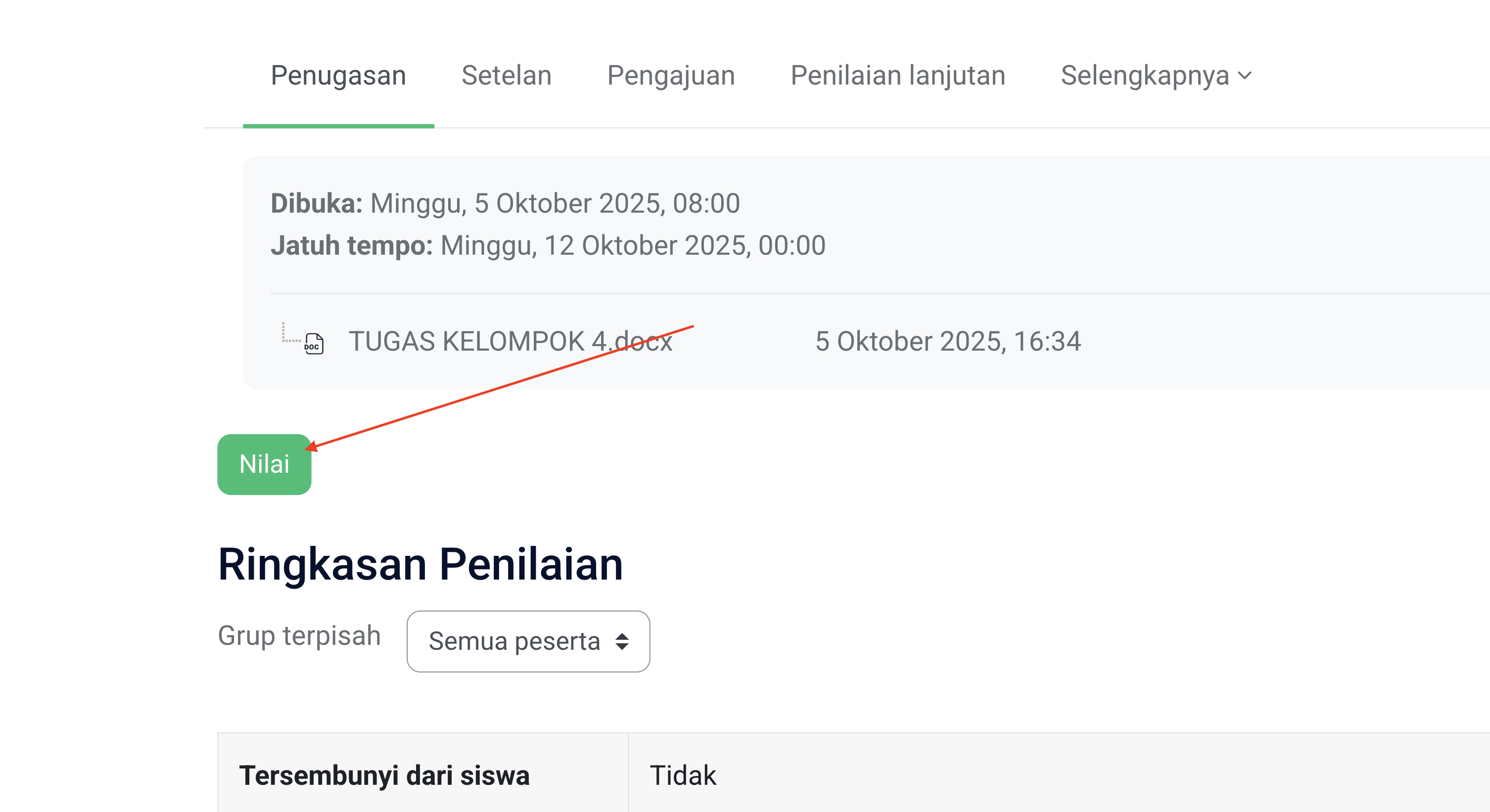 “Simpan perubahan” untuk menyimpan penilaian tunggal.